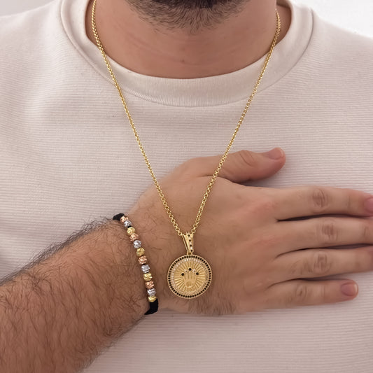 Cadena Tejido Aros de Hombre de 60cm de 2mm + Corona Rolex con Micro Circones Verde Esmeralda + Pulsera Balin Italiano de 6mm de 3OROS en Oro Laminado 18k con Garantia de por vida