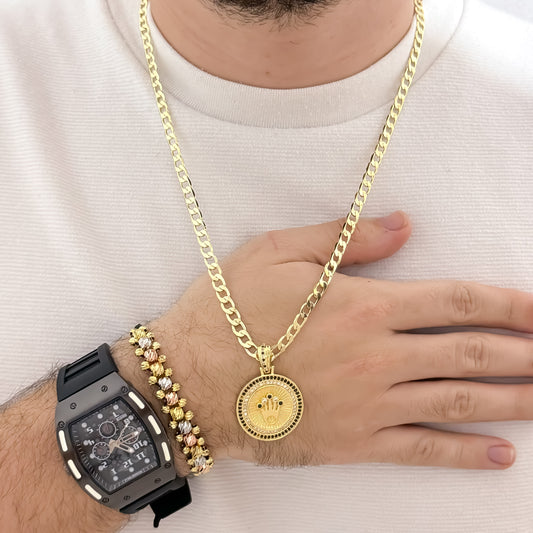 Cadena Cubana de Hombre de 60cm de 5mm + Corona Rolex + Pulseras 3 de Oros en Balin Italiano de 4mm en Oro Laminado 18k con Garantia de por vida