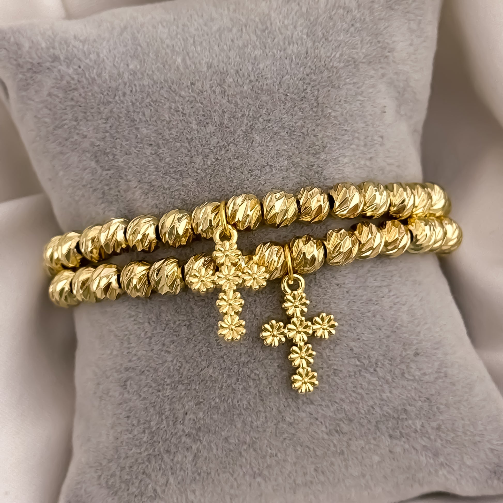 Pulseras para Parejas: Balín Italiano con Cruz en oro Laminado 18k