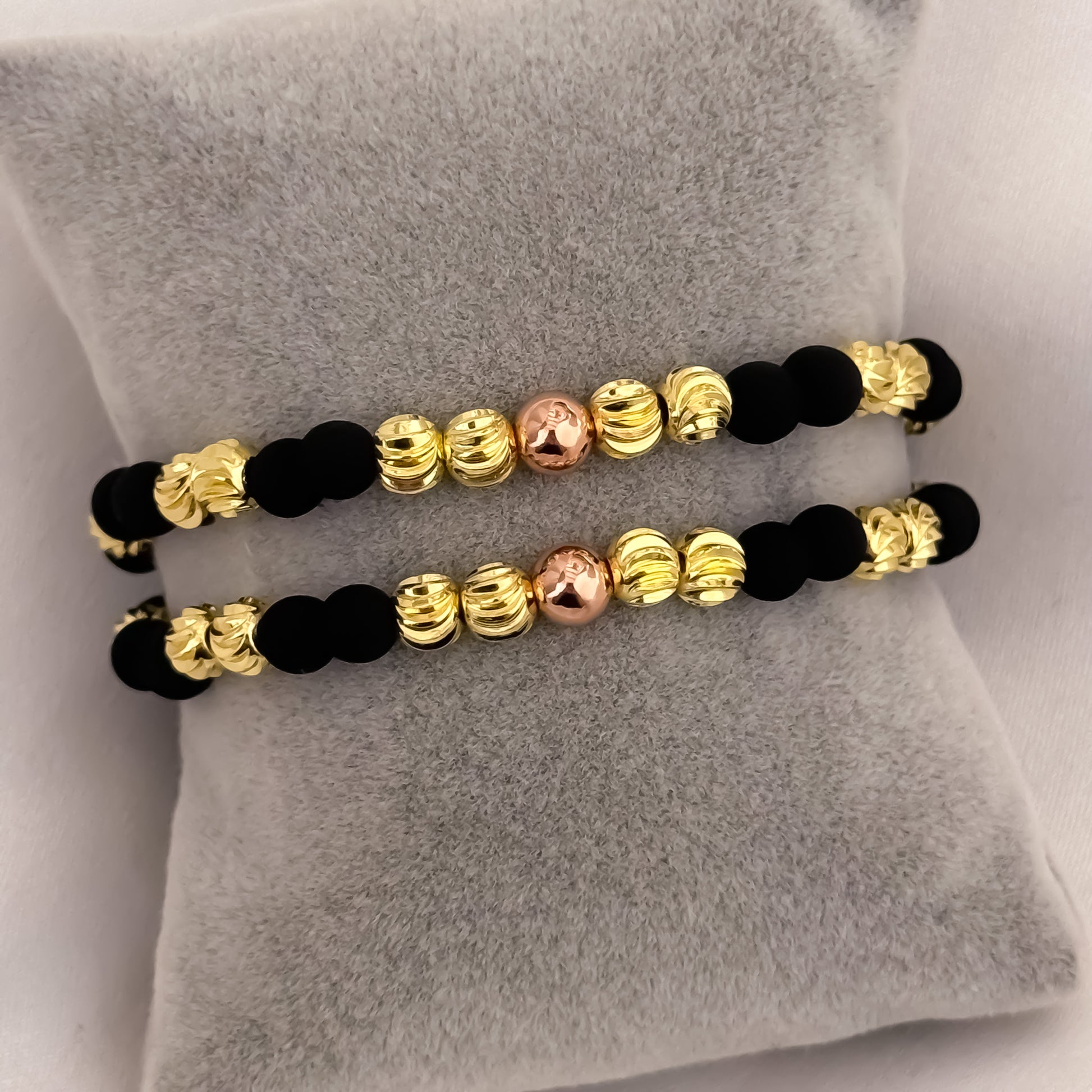 Promoción de 2 Pulseras para Parejas en Balin Italiano de 6mm + Balin Oro Rosa de 6mm en Oro Laminado 18k con Garantia de por vida